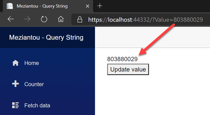 // 👇 The value is set from the query string by the SetParametersAsync method