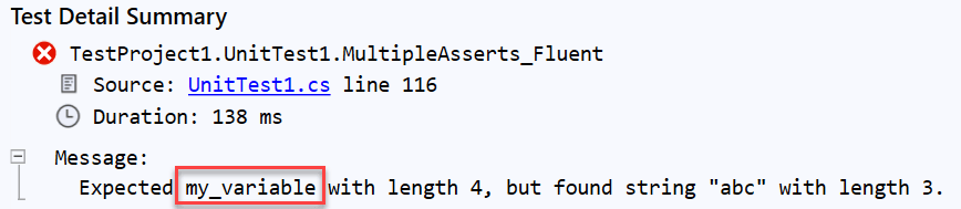 This point is arguable of course. But I think the test code should be easy to read and the intent should be clear. Using Fluent Assertions: