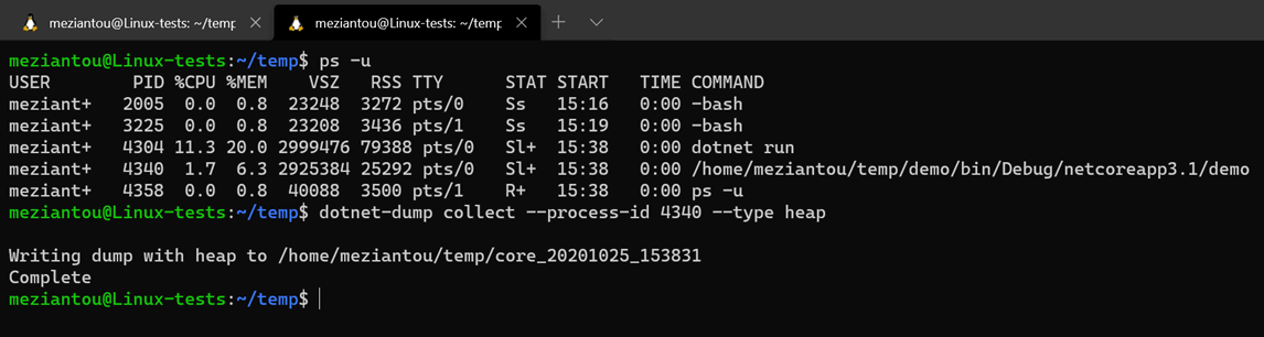 dotnet-dump collect --type heap --process-id <ProcessId>
