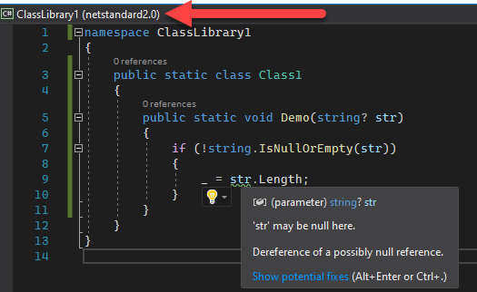 It doesn't mean you cannot use it with .NET Core 2.x, .NET Framework 4.x or .NET Standard 2.0 but this is not the supported use-case. As .NET Standard 2.0 will be the preferred target for a long time when writing a library, I'll show you how to use Nullable Reference types with older frameworks.