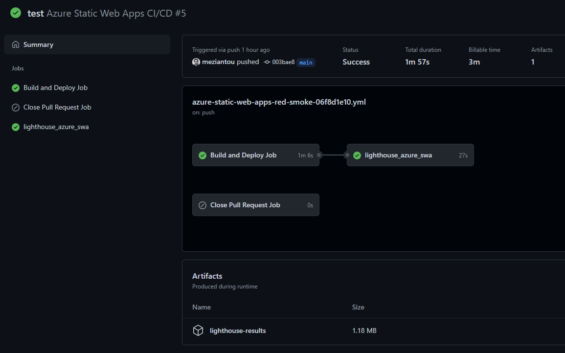 You can view the full report in the artifacts. The job generates a json and an html report for each tested URL: