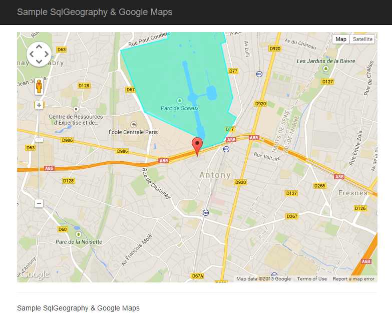 The API uses ASP.NET Web API. The only problem is to transmit the SqlGeography type. The simplest in our case (limited to Points or Polygons) is to transform this type into a list of points representing latitude and longitude: