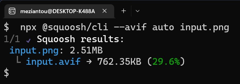 avifenc --min 0 --max 63 --minalpha 0 --maxalpha 63 --advanced end-usage=q --advanced cq-level=32 --advanced tune=ssim --speed 0 --jobs 1 --ignore-icc "input.jpg" "output.avif"