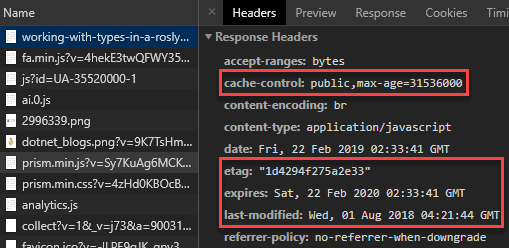 Caching static files such as CSS and JS files is essentials to improve the performance of your application. Indeed, downloading the same files every time you visit a page is a waste of time and bandwidth. There are some headers to send to the client when you send the files: