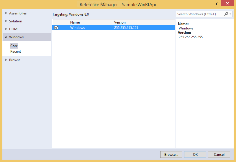 In the case of a Windows Store application, you have no references to add. Just add the specified using. For a desktop application, it's a little more complicated:
