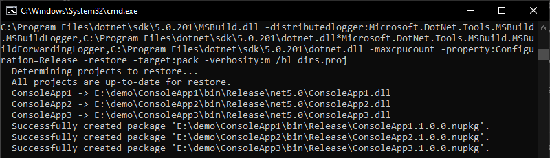 Finally, you can use the dotnet CLI to build, test, and pack the project. The SDK will forward the command to all referenced projects: