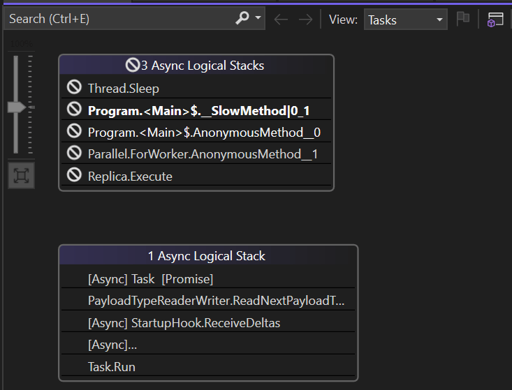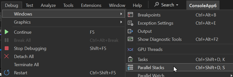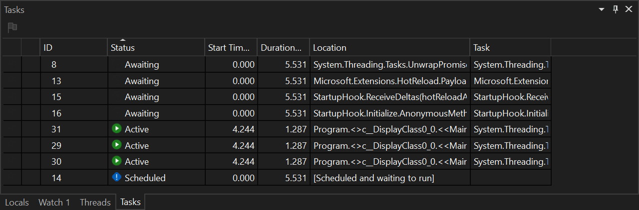 View .NET Tasks (Debug > Windows > Tasks)