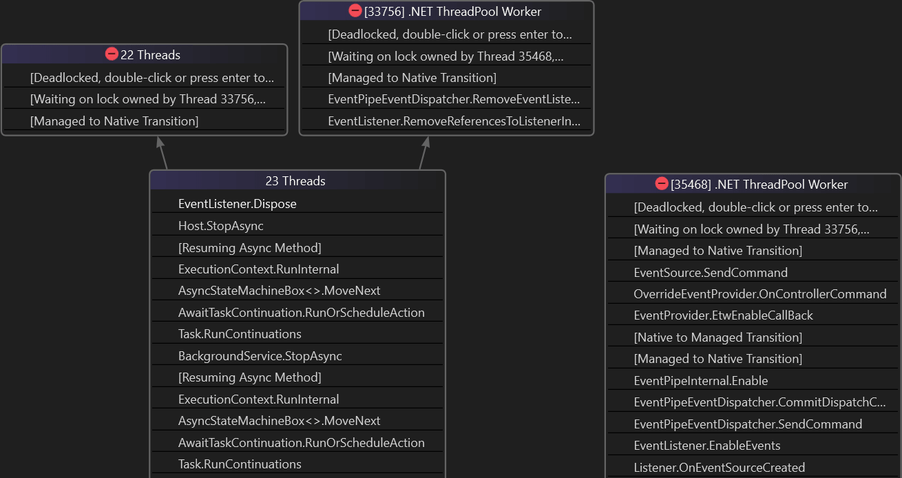 Detect deadlocks using the parallel stacks window: