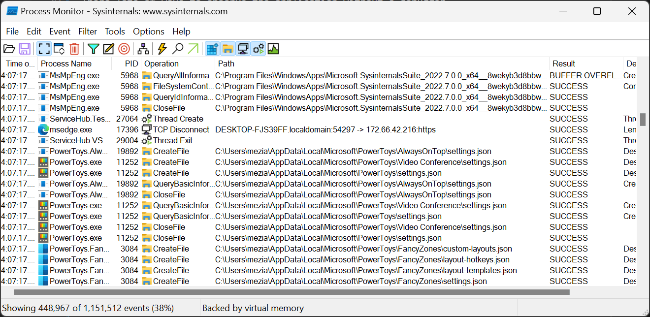 You can observe file system, registry and process/thread activity using procmon (Process Monitor) or wtrace