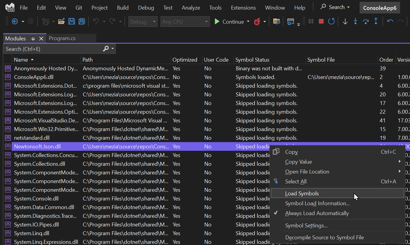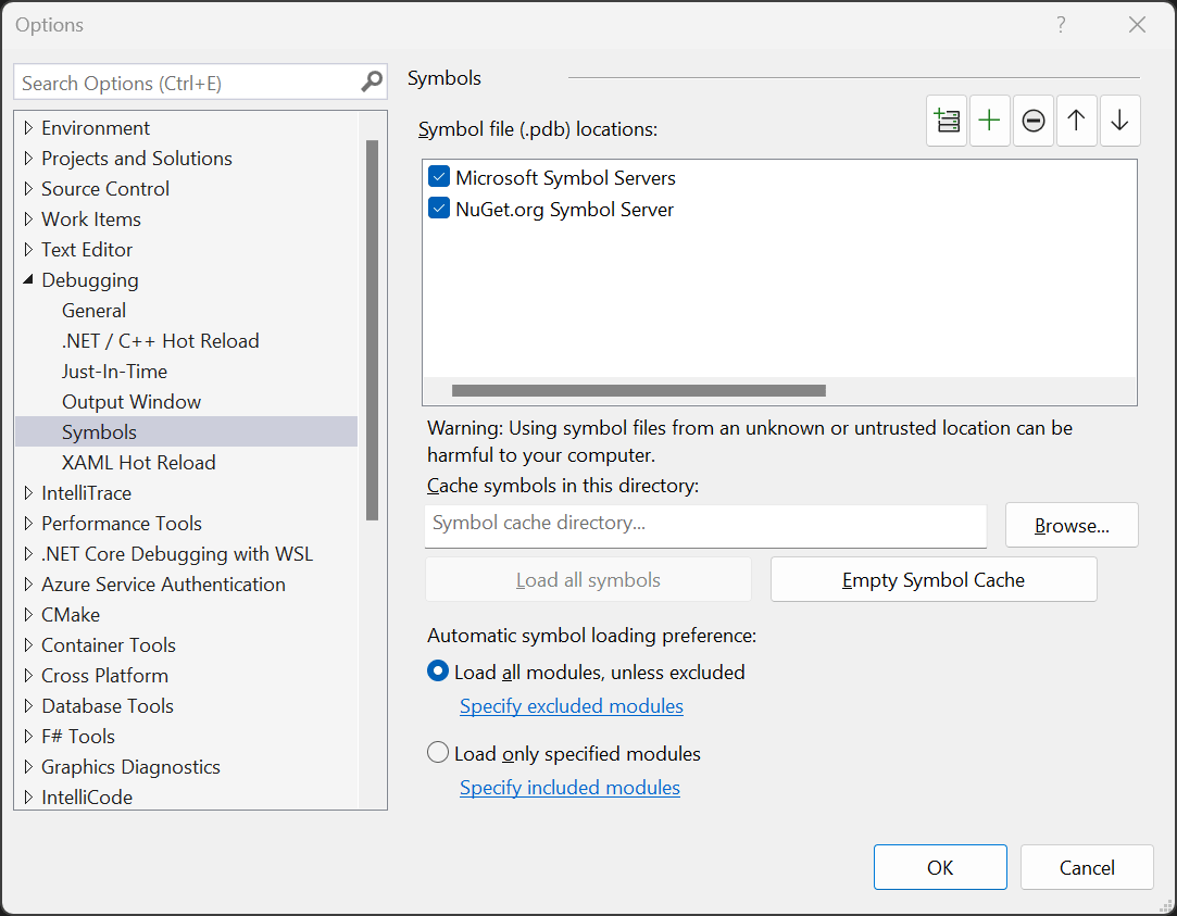 If it still cannot find the symbols, you may need to enable symbol servers in the options: