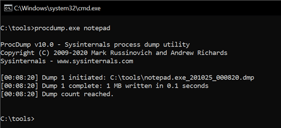 ProcDump is a command-line utility that allows generating a dump file when the application freezes or when the process uses too much CPU.