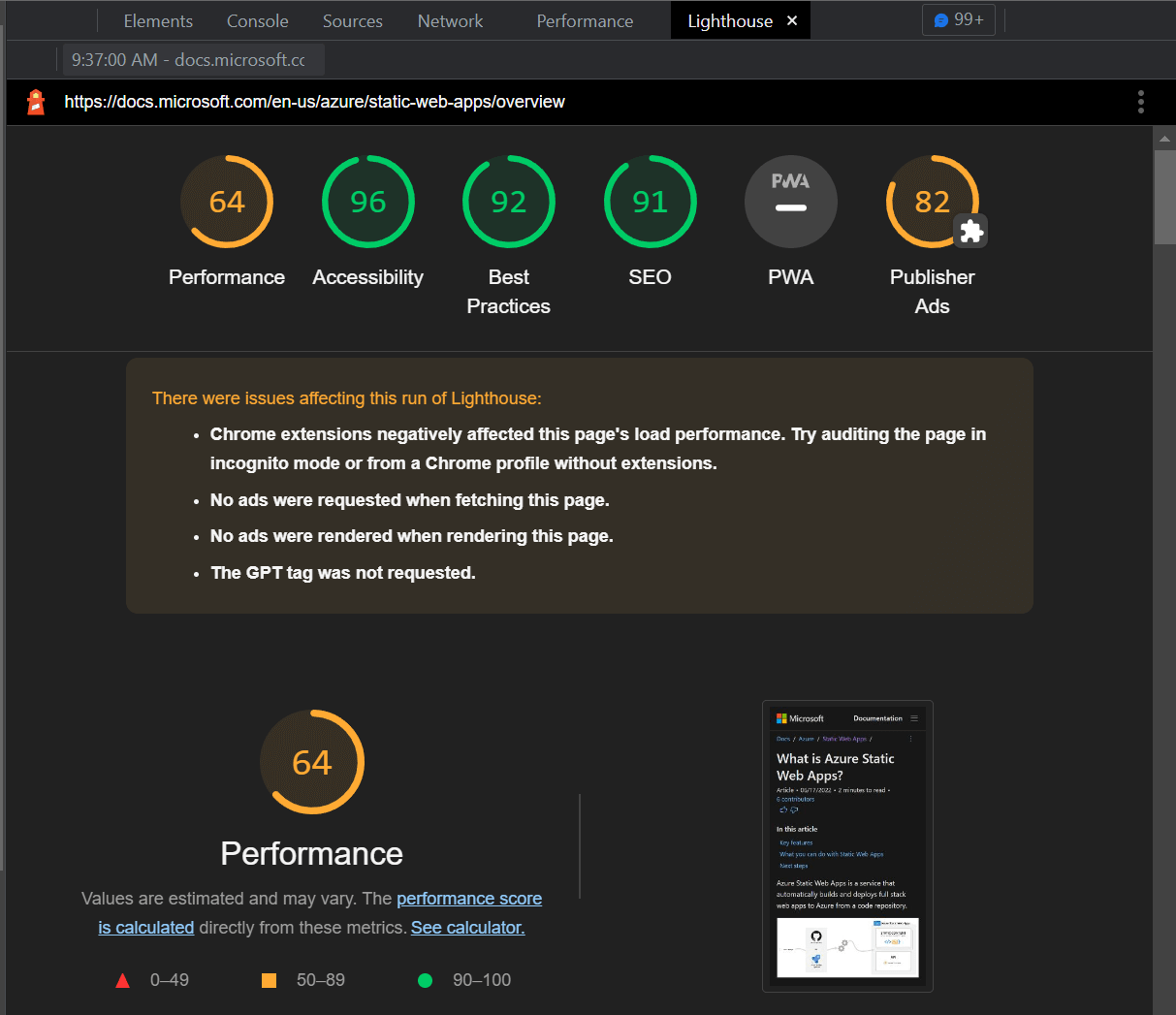 When you add new features to a web application, it's important to ensure there is no regression in terms of performance. LightHouse CI is a tool that helps you to run a Lighthouse analysis on your web application. If you don't know lighthouse, it's a tool that analyzes web apps and web pages and generates a report about performance and best practices. Lighthouse integrated into the dev tools of Chromium browsers: